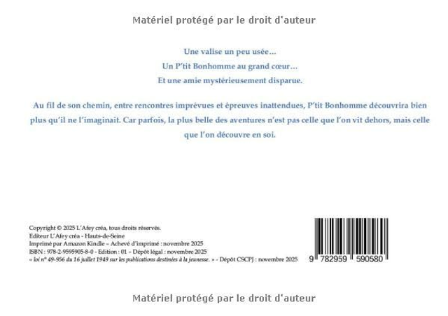 Au fil de son chemin, entre rencontres imprévues et épreuves inattendues, P’tit Bonhomme découvrira bien plus qu’il ne l’imaginait. Car parfois, la plus belle des aventures n’est pas celle que l’on vit dehors, mais celle que l’on découvre en soi.
